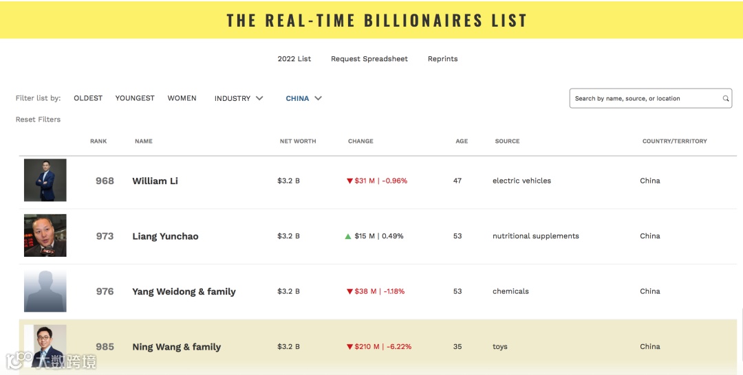 值得一提的是,据福布斯实时富豪榜,截至目前,泡泡玛特的“85后”创始人王宁夫妇身家为32亿美元,仍可比肩蔚来创始人李斌。