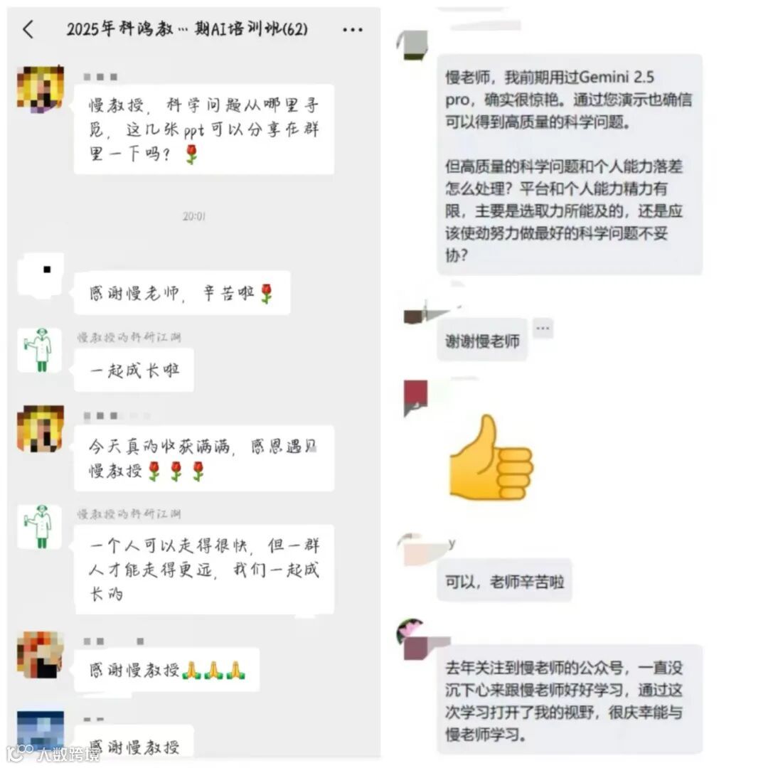随着人工智能技术的飞速发展,它在科研中的应用也日益广泛。下午3个小时的讲座未尽兴,慢老师在晚上又额外增加了2个小时,聚焦于AI在科研中的应用,探讨了如何利用AI工具解决高质量科学问题与个人能力之间的落差,以及演示了如何建立个人AI检索数据库、如何使用提示词手册等实操过程。
