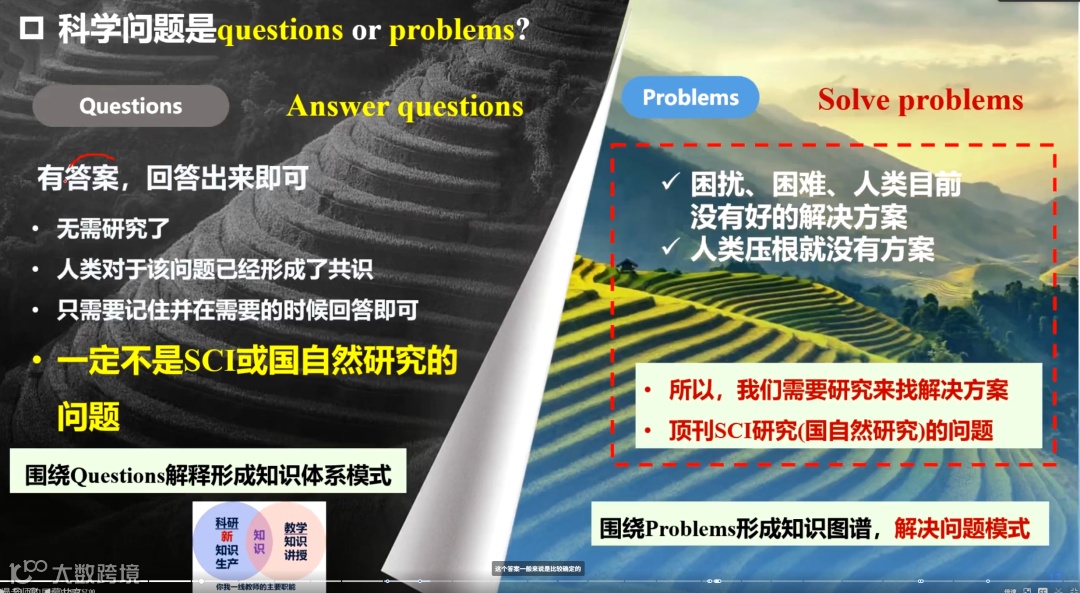 课程围绕科学问题和创新展开,强调了科学问题在科研中的核心地位。科学问题的选取决定了科研的高度,而创新则更多地体现在技术维度。慢老师深入阐述了科学问题的定义与重要性,指出科学问题是关于现象本质或规律的抽象问题,能够推动学科发展或突破瓶颈。与工程问题不同,科学问题关注的是机理和机制,而工程问题则更侧重于经济效益。