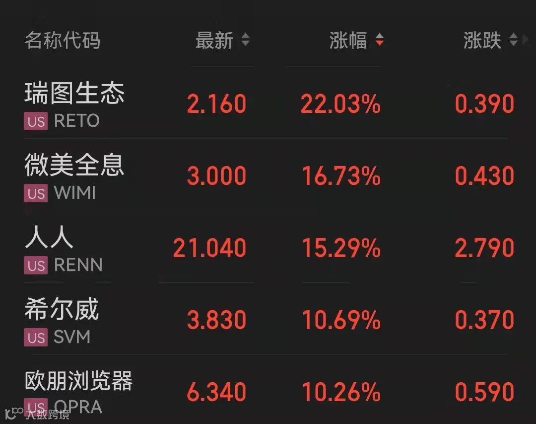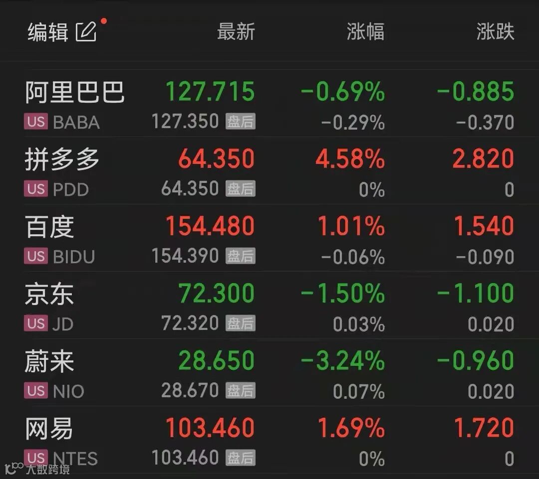 热门中概股周三涨跌不一 拼多多上涨4.58%