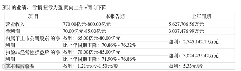 同为养殖股,市值近3000亿养殖巨头牧原股份此前发布业绩预告称,公司预计2021年归母净利润为65亿至80亿元,净利润同比下降76.32%至70.86%;预计营业收入为770亿元至800亿元。