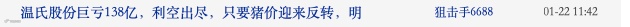 根据最新数据,截至1月21日,温氏股份成为A股最新的2021年报预亏王,超过此前百济神州预亏110.12亿元的最高金额。