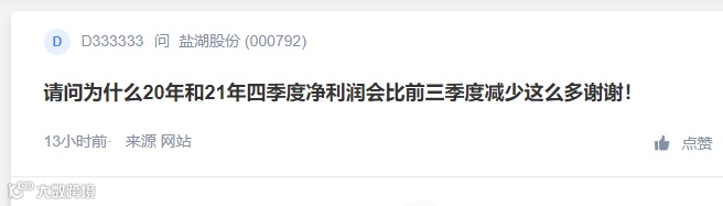 上述业绩也引起投资者关注。有投资者在互动平台提问:为什么2020年和2021年四季度净利润会比前三季度减少这么多?