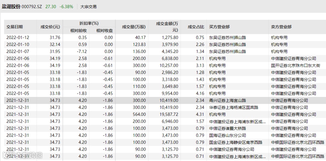 此后又披露,邮储银行青海分行2021年12月31日,通过大宗交易方式合计减持公司股份1774万股,占公司总股本的0.33%。本次变动后,邮储银行青海分行持有公司4.94%股份,均为无限售条件股份。