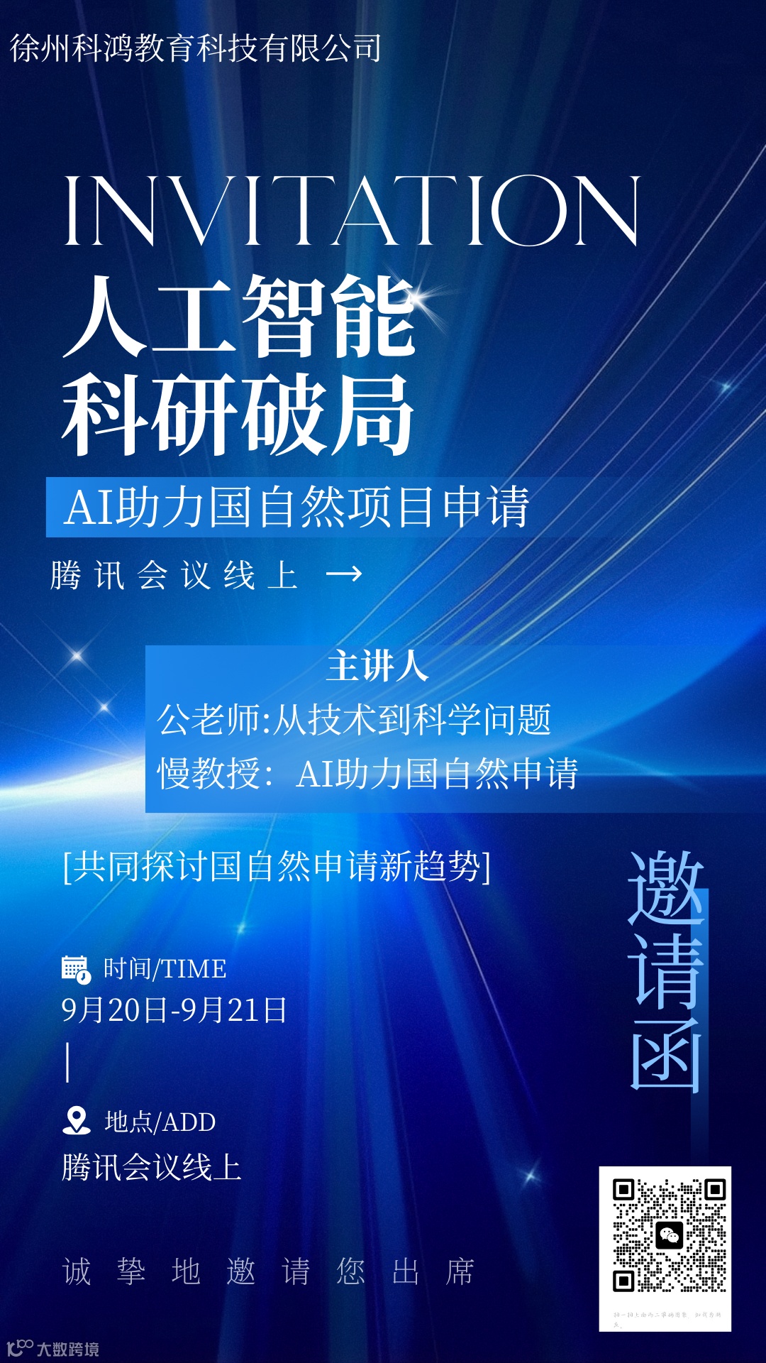 国自然项目申请是科研人员攀登学术高峰的关键一步,而AI工具的高效性正为这一过程注入新动力。为助力科研人员精准把握申请要领,提升申请成功率,徐州科鸿教育科技有限公司特邀公教授和慢教授两位专家,举办“AI助力国自然项目申请交流会”。