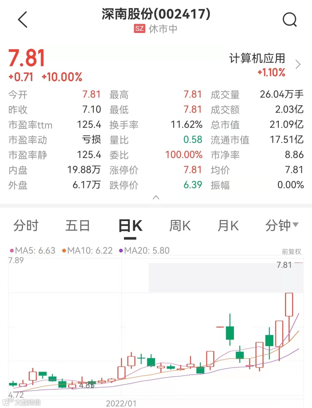在牛年最后一周的交易中,深南股份在5天斩获4个涨停板。