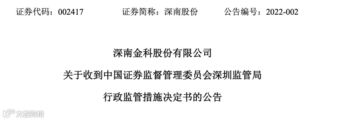 就在公司披露业绩公告前,深南股份1月19日公告称,收到深圳证监局的行政监管措施决定书。