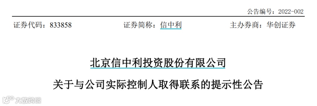 1月7日晚间,信中利发布公告称,公司与实际控制人汪超涌取得联系,确认其失联期间配合公安机关调查。截至公告披露日,汪超涌已经正常履职,公司经营情况正常。公司将持续关注上述事项的进展情况,并严格按照法律、法规的规定,及时履行信息披露义务。