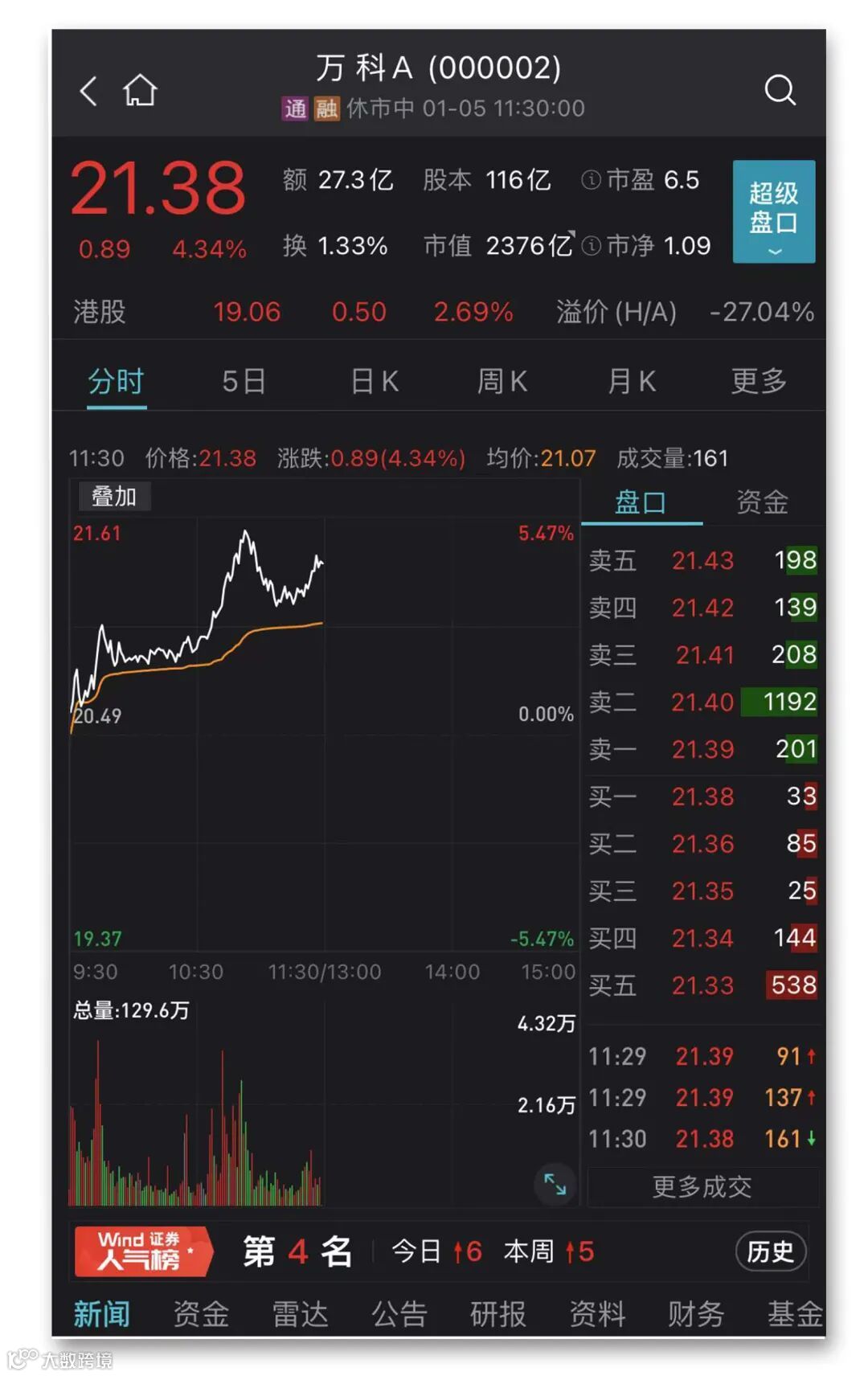 万科A等低估蓝筹逆市上涨
