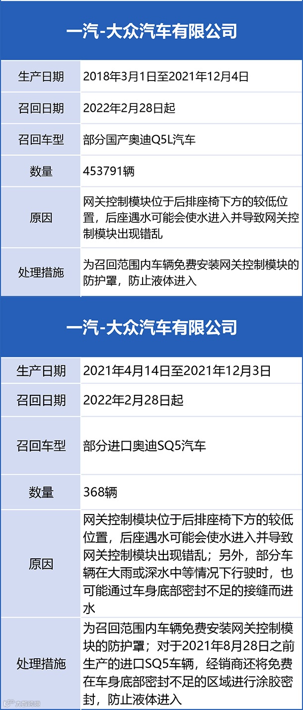 1月27日,中国证券报记者从国家市场监督管理总局获悉,奔驰、大众、五菱宏光、奇瑞、丰田等多家车企同时发布召回消息,涉事车辆超150万辆,涉及发动机、变速器、冷却箱等多重问题。