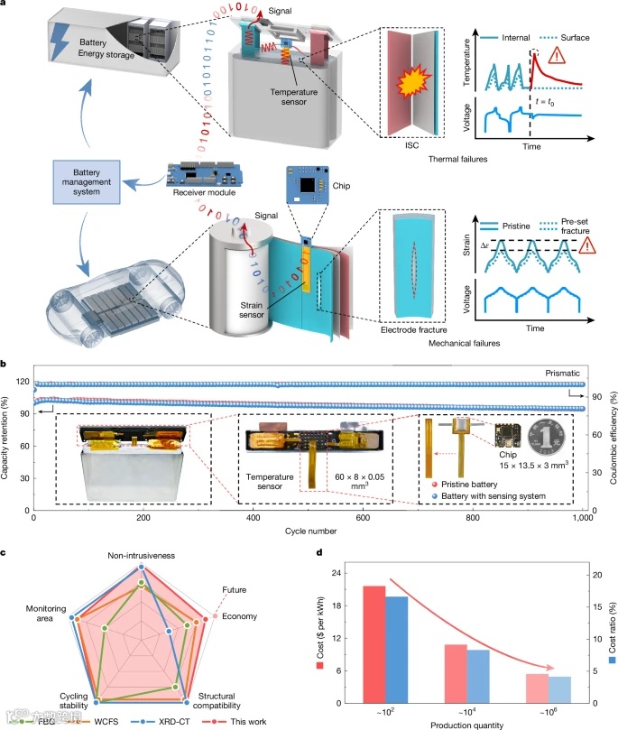 因此,这一非侵入式植入传感系统在提升下一代智能锂电池的安全性与可靠储能方面,迈出了关键一步。