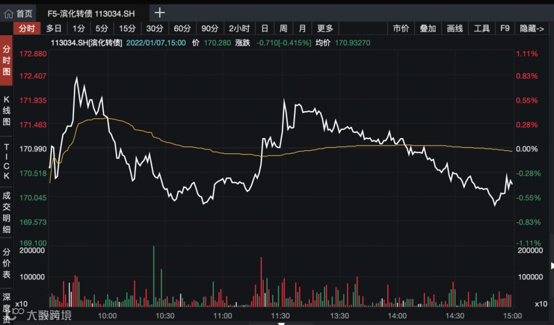 1月7日,滨化转债小幅下跌0.42%,收盘报170.28元。以此计算,如果投资者不及时转股或者卖出,转债被强制赎回的话,每张将损失69.902元,损失比例高达41%。