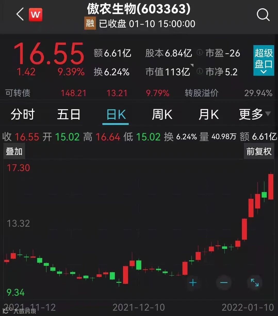 其他农业概念股亦明显走高。饲料指数涨5.61%,猪产业指数涨5%,生物育种指数涨3.85%;成分股中,唐人神、金新农双双涨停,正邦科技、天康生物、新五丰、龙大美食等集体走高。傲农生物大涨超9%,2022年初以来的5个交易日,累计上涨30.32%。