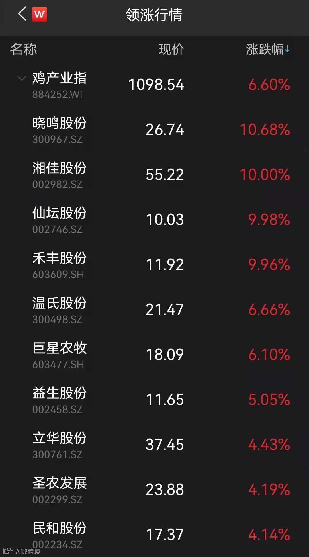 鸡产业概念股强势上涨