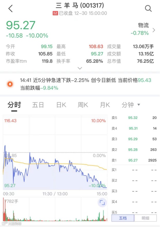 17连板三羊马跌停