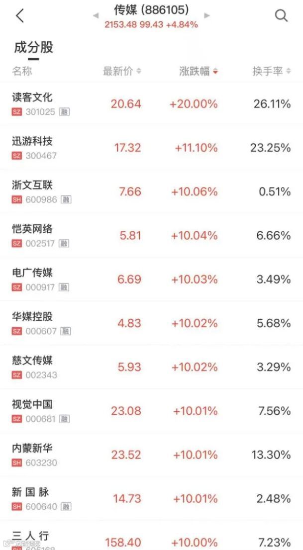 传媒板块领涨