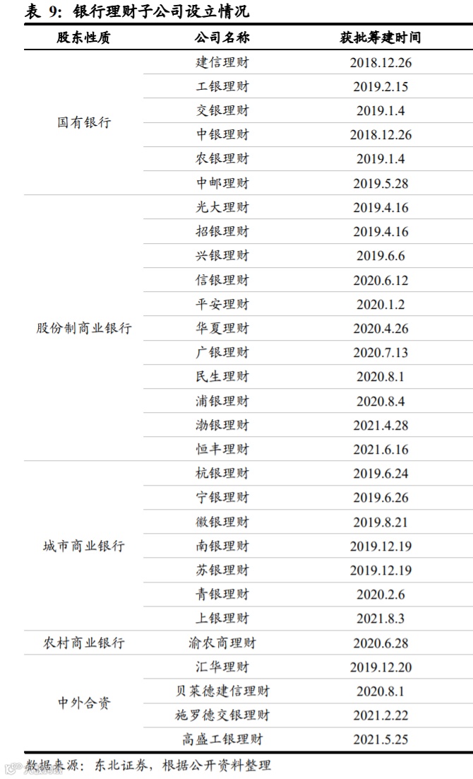 大中型银行陆续完成银行理财子公司布局,不少中小银行也在发力。