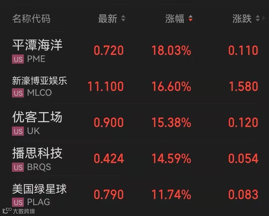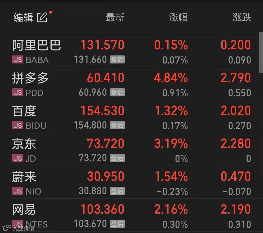 热门中概股上周五上涨