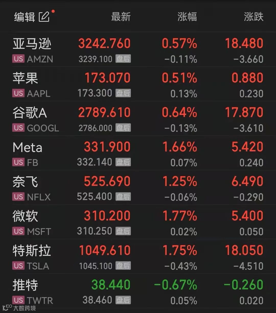 美国大型科技股上周五多数上涨,微软、特斯拉等涨逾1%。
