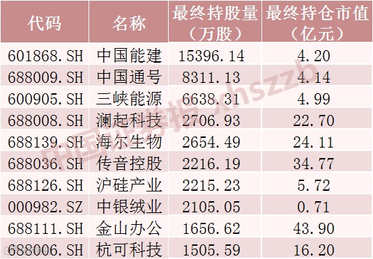 北向资金2021年初十大重仓股