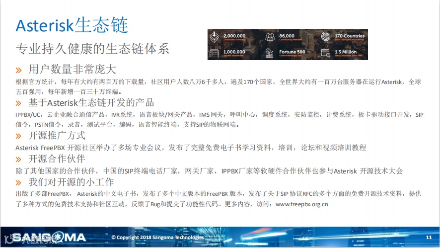 接下来主要是介绍了Asterisk 专业健康持久的生态链和FreePBX为企业提供强大灵活的电话通信能力以及FreePBX的相关功能