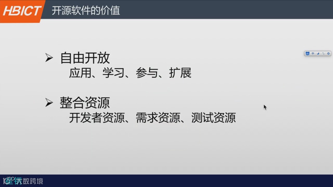 崔老师首先是简单的介绍了一下从业经历和技术的发展过程。也跟我们谈了一下开源软件的价值,自由软件的源代码开放,可以支持大家自主学习和二次开发;也涉及到资源的整合,能够整合开发者的资源、需求资源的整合、测试的资源(可以提供非常丰富的场景和应用),这也是开源软件的价值的存在。