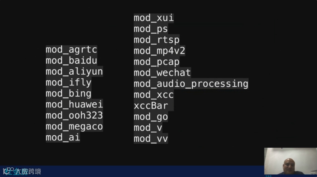 杜老师也给我们详细的讲解了FreeSWITCH中的h323模块和其他模块,以及我们自己研发的模块。例如我们与Agora的互通,百度和阿里云的ASR/TTS等功能。这部分模块并没有对外开源,有需要的小伙伴可以联系我们(xyt@x-y-t.cn)。