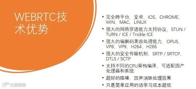 介绍完传统流媒体之后,闫老师给大家介绍了WebRTC的技术优势,和SFU服务器的主要特点和相关优势,以及在其基础上如何实践各个端的SDK和服务器并发的负载均衡。