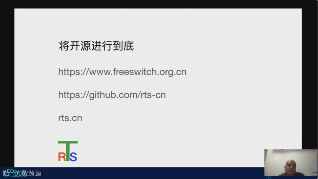 杜老师接下来讲了关于开源的一些故事和为什么要建立RTS社区,同时介绍了RTS社区为开源做的贡献和增加的FreeSWITCH分支。