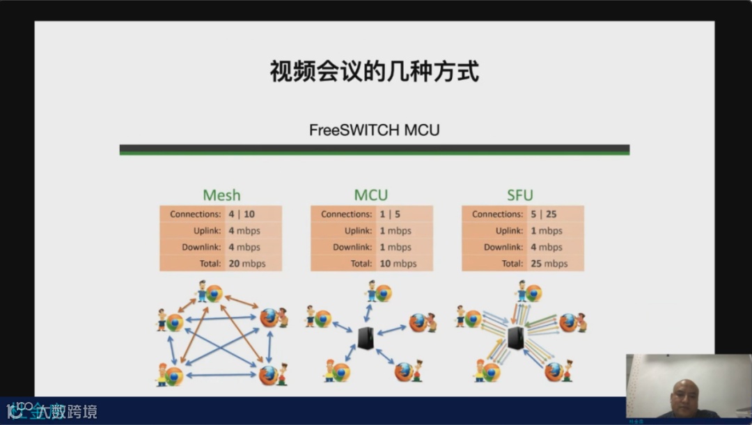 今年我们的会议直播使用的是我们基于FreeSWITCH开发的视频会议平台,我们给大家提供了三种参会方式(WebRTC、WebRTC直播模式、浏览器直播模式),大家可以自由选择参会方式。