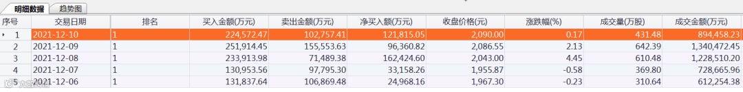 北向资金本周买卖贵州茅台明细数据