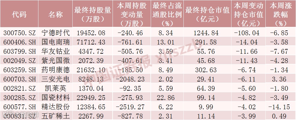 本周持仓市值减少额居前十股均被北向资金减仓,其中三安光电、精达股份被北向资金减仓超1000万股。