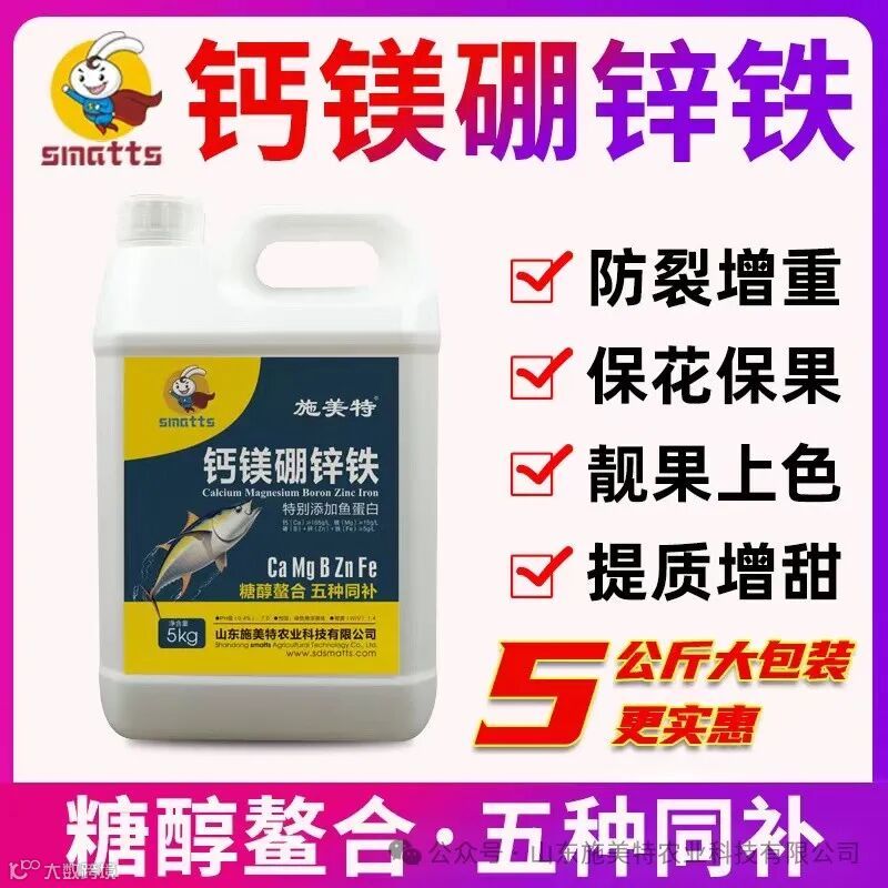 在茄果类蔬菜和果树保花保果期,钙镁锌硼铁元素必不可少,花期前后要补硼,防裂果要补钙,预防黄叶要补锌、铁、镁,尤其是钙和硼对开花、坐果、保果至关重要!