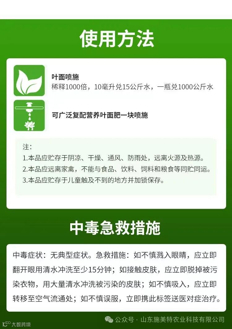 9/10与其他药剂的混合:避免将芸苔素与其他农药或化学物质混合使用,以免产生不可预测的反应或效果。在使用芸苔素之前,仔细阅读产品说明,了解可能的相互作用。