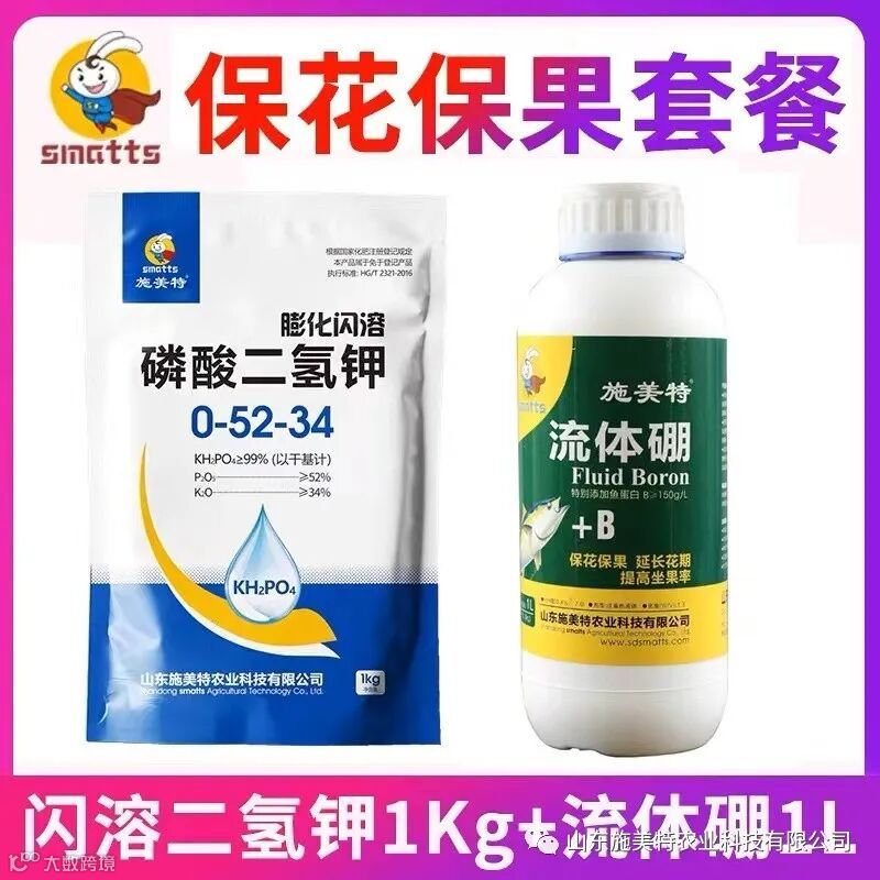 1、磷酸二氢钾搭配硼元素,就是一种很好的促花促果和保花保果搭档。
