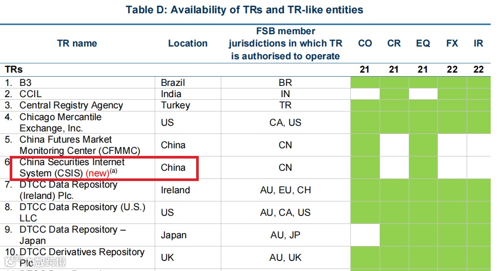 作为促进全球金融监管协作的国际合作组织,金融稳定理事会(FSB)日前发布《2021年全球场外衍生品市场改革进展报告》,将中证机构间报价系统股份有限公司列入正式交易报告库名单。