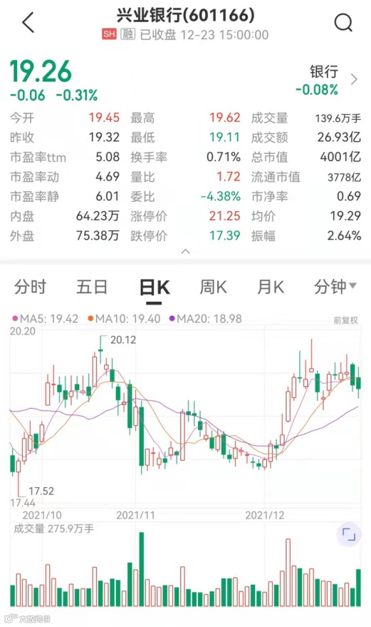 募集说明书显示,兴业转债的初始转股价格为25.51元/股。就正股表现来看,兴业银行最新收盘价为19.26元/股,近三个月呈震荡上升走势。