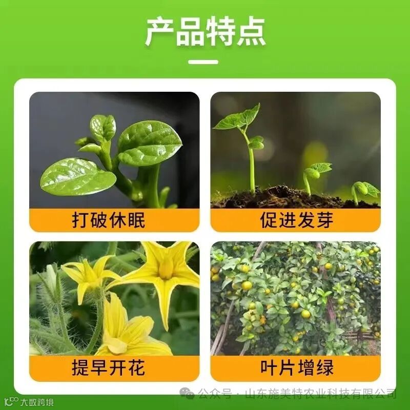 功能特性:复硝酚钠能加快植物生长速度,打破休眠,促进生长发育,防止落花落果、裂果、缩果,改善产品品质,提高产量,提高作物的抗病、抗虫、抗旱、抗涝、抗寒、抗盐碱、抗倒伏等抗逆能力。它广泛适用于粮食作物、经济作物、瓜果、蔬菜、果树、油料作物及花卉等。可在植物播种到收获期间的任何时期使用,可用于种子浸渍、苗床灌注、叶面喷洒和花蕾撒布等。由于它具有高效、低毒、无残留、适用范围广、无副作用、使用浓度范围宽等优点,已在世界上多个国家和地区推广应用。复硝酚钠还应用畜牧、渔业上,在提高肉、蛋、毛、皮产量和质量的同时,还能增强动物的免疫能力,预防多种疾病。