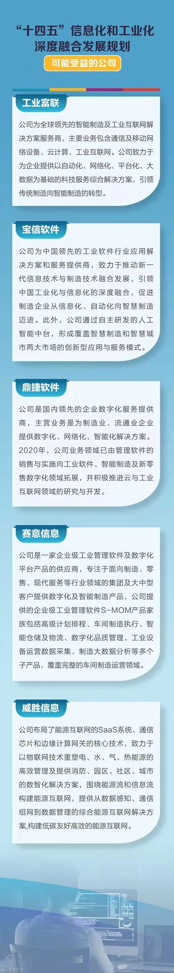 11月30日,工信部发布《“十四五”信息化和工业化深度融合发展规划》《“十四五”软件和信息技术服务业发展规划》《“十四五”大数据产业发展规划》。根据这些规划,到2025年,我国规模以上软件企业业务收入要突破14万亿元,大数据产业测算规模要突破3万亿元。