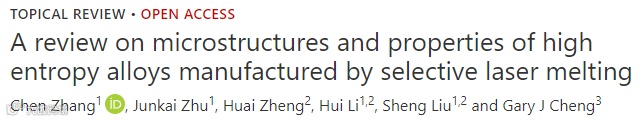 Zhang C, Zhu J K, Zheng H, Li H, Liu S et al. A review on microstructures and properties of high entropy alloys manufactured by selective laser melting. Int. J. Extrem. Manuf. 2, 032003 (2020).
