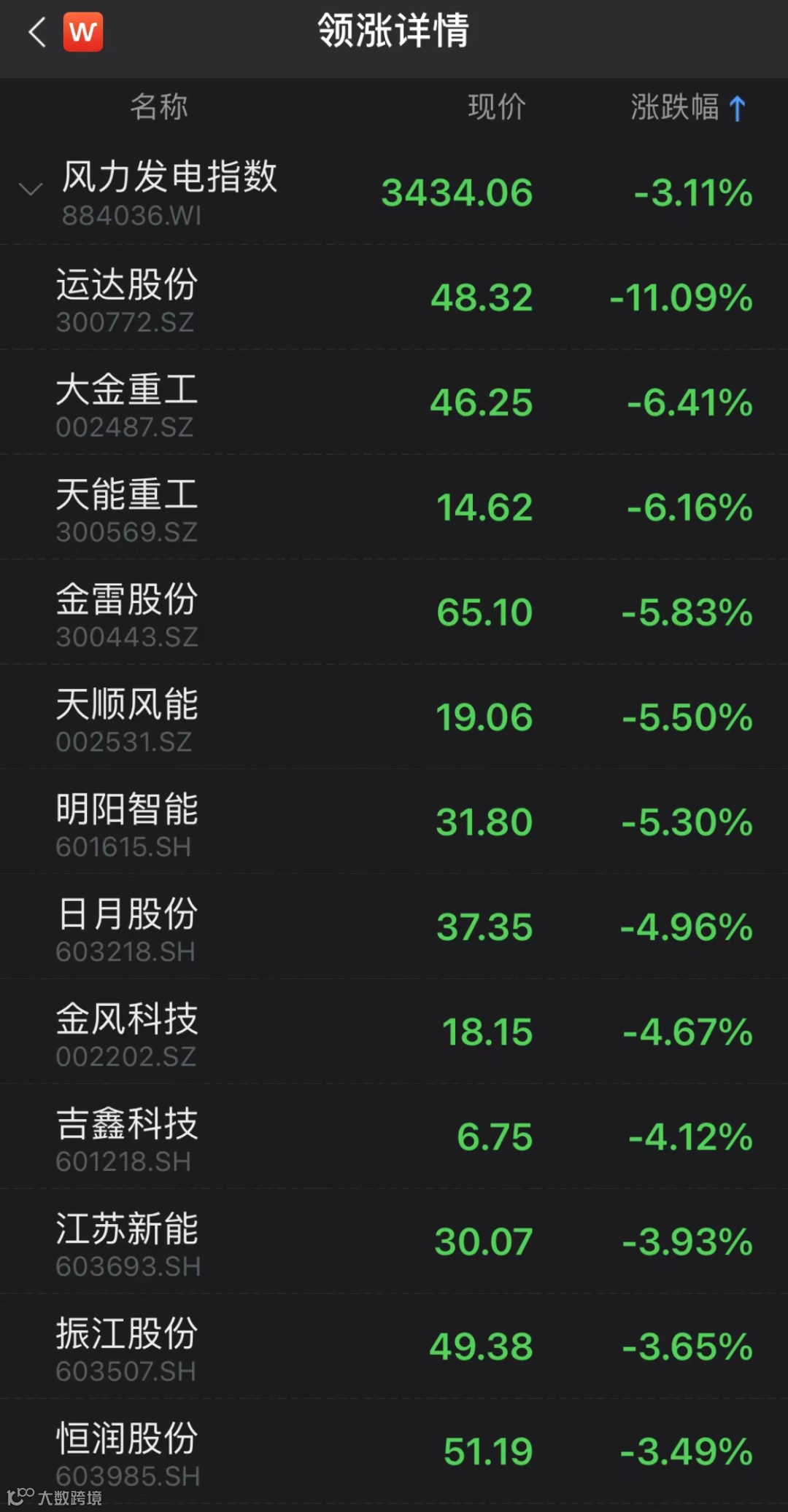 虽然今日碳纤维细分领域表现活跃,但是风电板块却大幅回调。大金重工、明阳智能、天顺风能等个股跌幅居前。