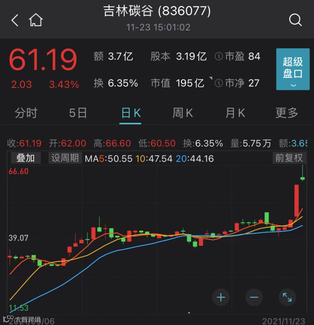 今日,北交所个股吉林碳谷上涨3.43%,盘中涨超12%,该股昨日上涨28.14%。