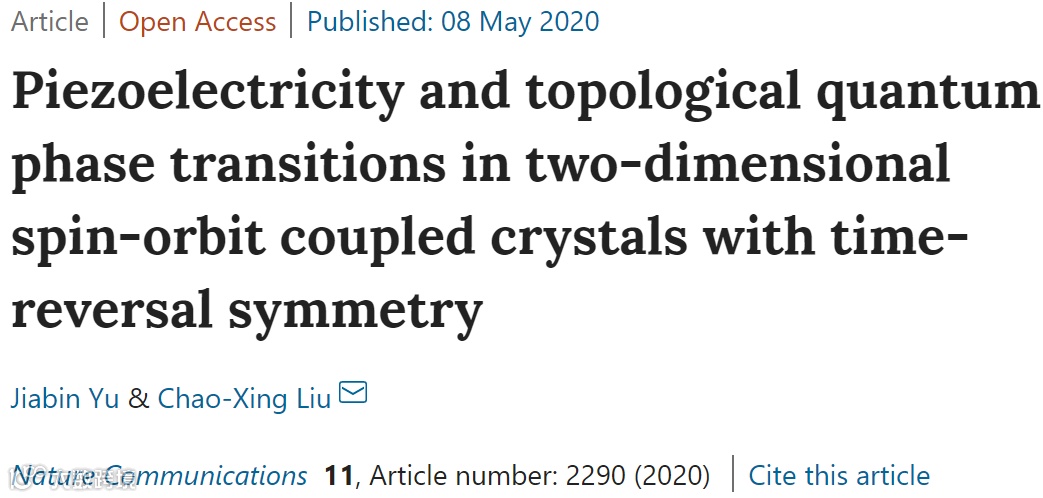 近期,美国宾夕法尼亚州立大学刘朝星教授课题组从理论上提出压电响应的突变可以表征一系列二维拓扑相变,从而第一次揭示了压电系数和拓扑相变间的关系。相关成果以“Piezoelectricity and Topological Quantum Phase Transitions in Two-Dimensional Spin-Orbit Coupled Crystals with Time-Reversal Symmetry”为题,发表在国际综合期刊《Nature Communications》上(Nature Communications, 11, 2290, 2020, https://doi.org/10.1038/s41467-020-16058-2)。