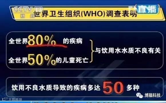 全世界80%的疾病和50%的儿童死亡都与饮用水水质不良有关。