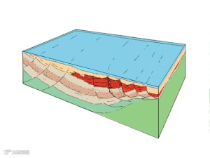 石油沿断裂和多孔介质向上运移的过程