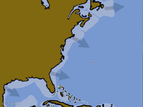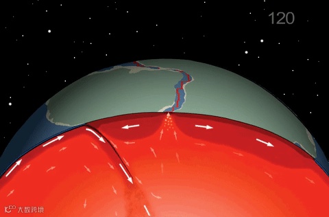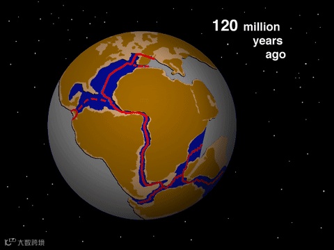 1.7亿年至今,非洲板块和北美洲板块间的大洋中脊的生长过程