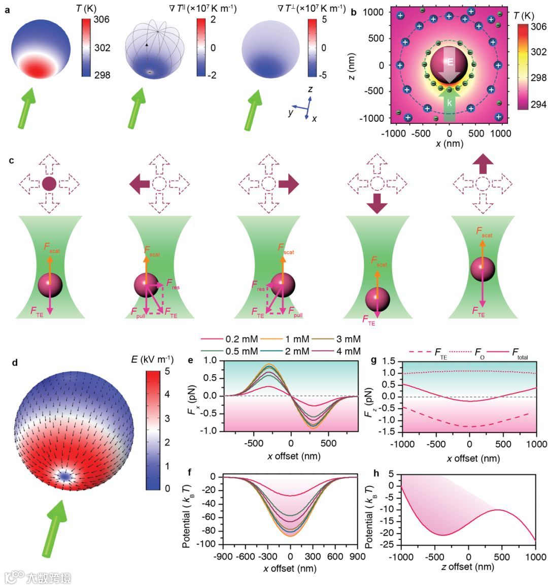 (a)激光加热硅颗粒产生的操控热电场示意图。