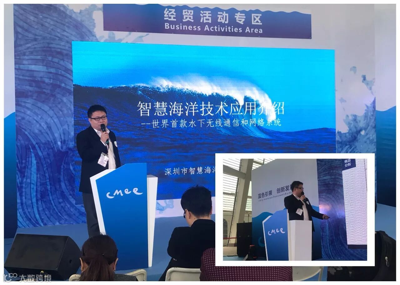 中国海博会实力搭台,各界精英齐聚一堂。智慧海洋科技常务副总裁陈学思于专业推介会上全面介绍了基于智慧海洋理念的水下无线通信控制网络系统,希望大家为推动海洋经济的交流与合作凝聚共识和力量,付诸实践与行动,为圆梦而奋斗。