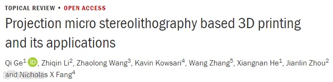 Ge Q, Li Z Q, Wang Z L, Kowsari K, Zhang W et al. Projection micro stereolithography based 3D printing and its applications. Int. J. Extrem. Manuf. 2, 022004 (2020).