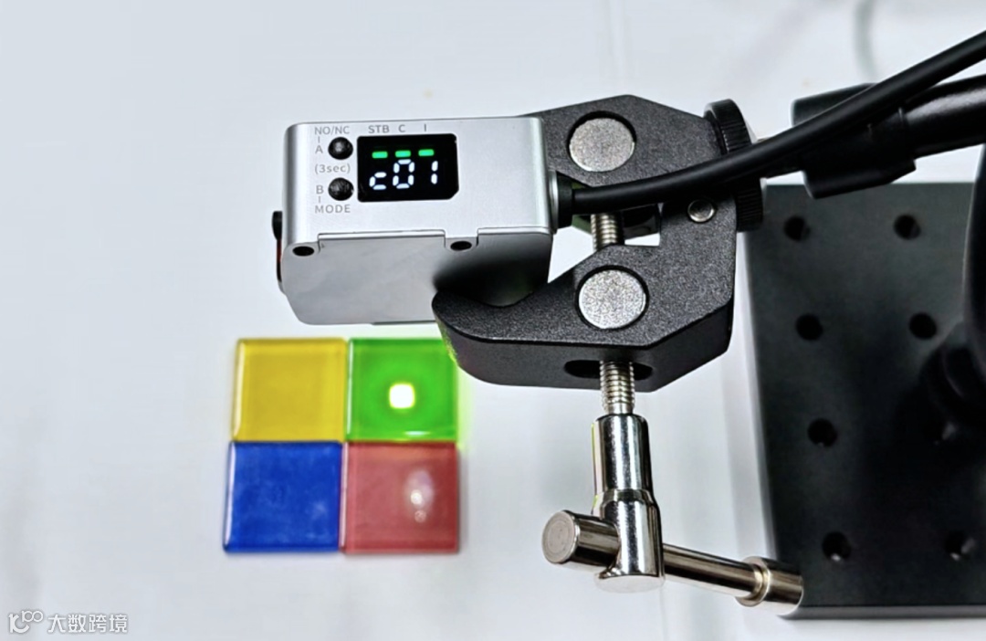 基于白色LED光源的特性,深视智能SS1系列颜色传感器突破了传统单色RGB、融合光RGB的波长限制,将发射波长的范围覆盖到整个可见光谱,最大支持检测16种颜色。那么,我们如何利用SS1系列颜色传感器同时检测多种颜色呢?
